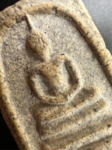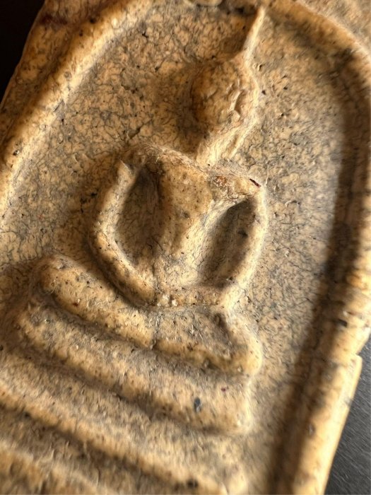 • 此款佛牌的材質通常較堅硬,粉質較粗,顏色偏黃或帶點淡灰色。
